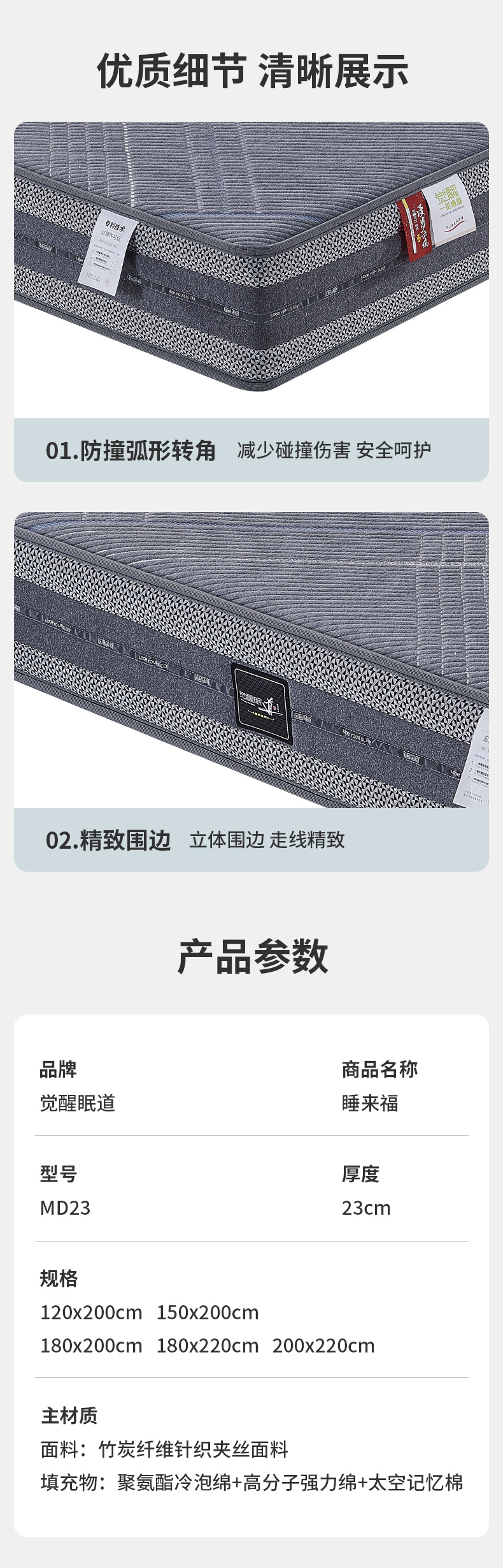 MD23睡來福 厚度:23cm 睡感: 硬85% 指導價:5999.00元
