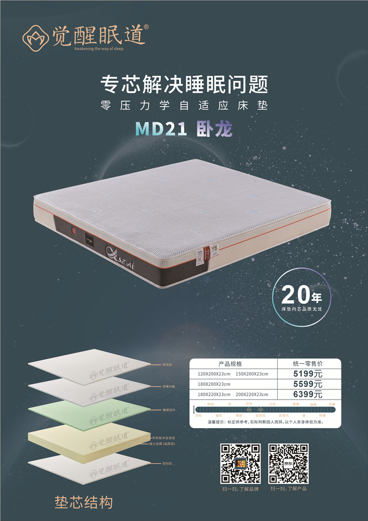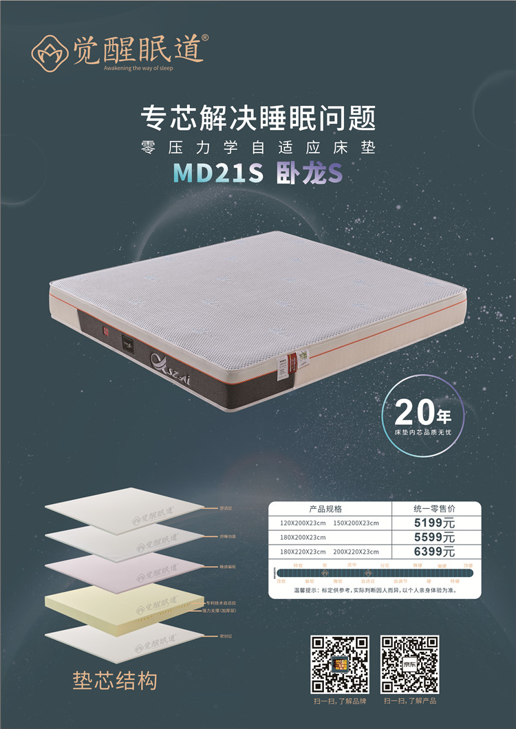 MD23睡來福 厚度:23cm 睡感: 硬85% 指導價:5999.00元