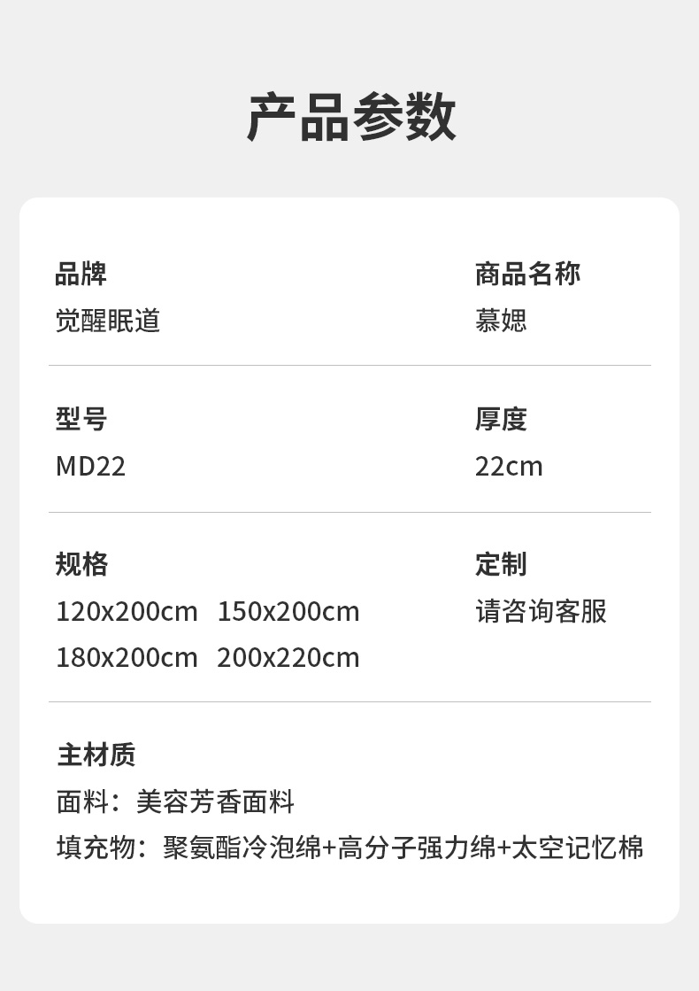 MD22 慕媤 22㎝ 減壓優睡芳香助眠 型,睡感微硬。指導價:4130.00元
