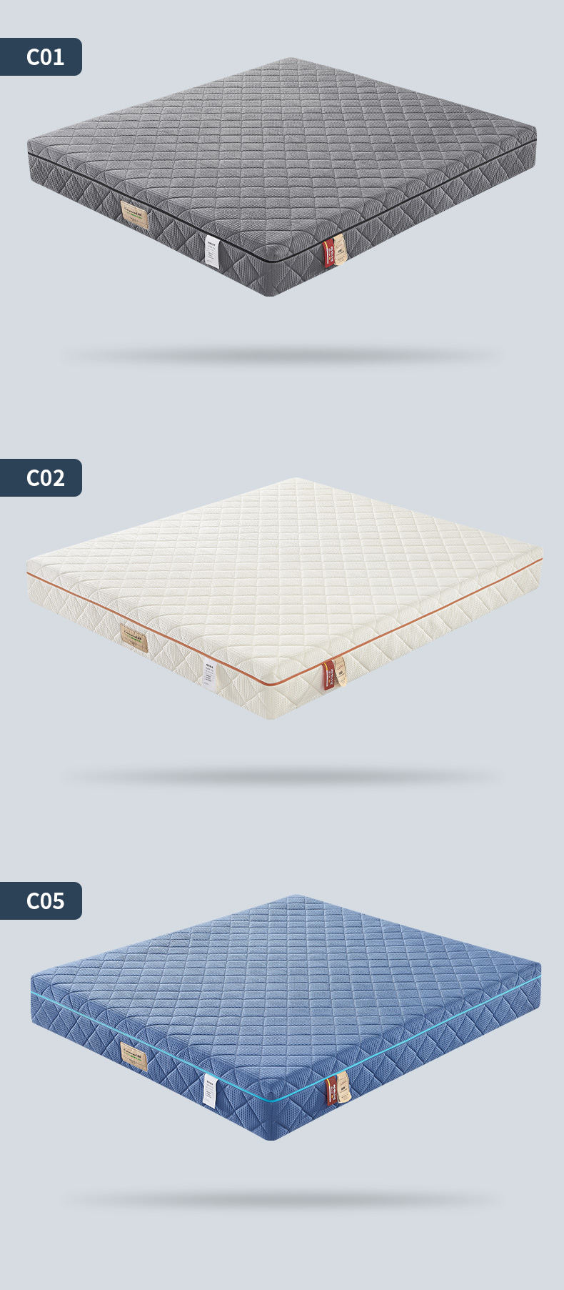 C01~C08云漫,力學保健型,睡感自適應可調節,厚度23~25cm,采用華芙格純棉間綿可拆洗內外套式,官網指導價:19888元