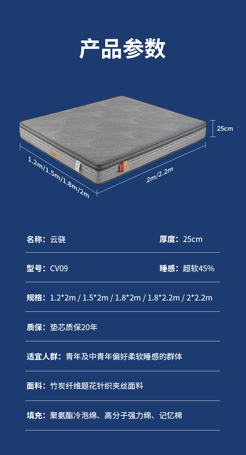 CV09云驍 厚度25cm 睡感:超軟45% 指導價:6890.00